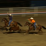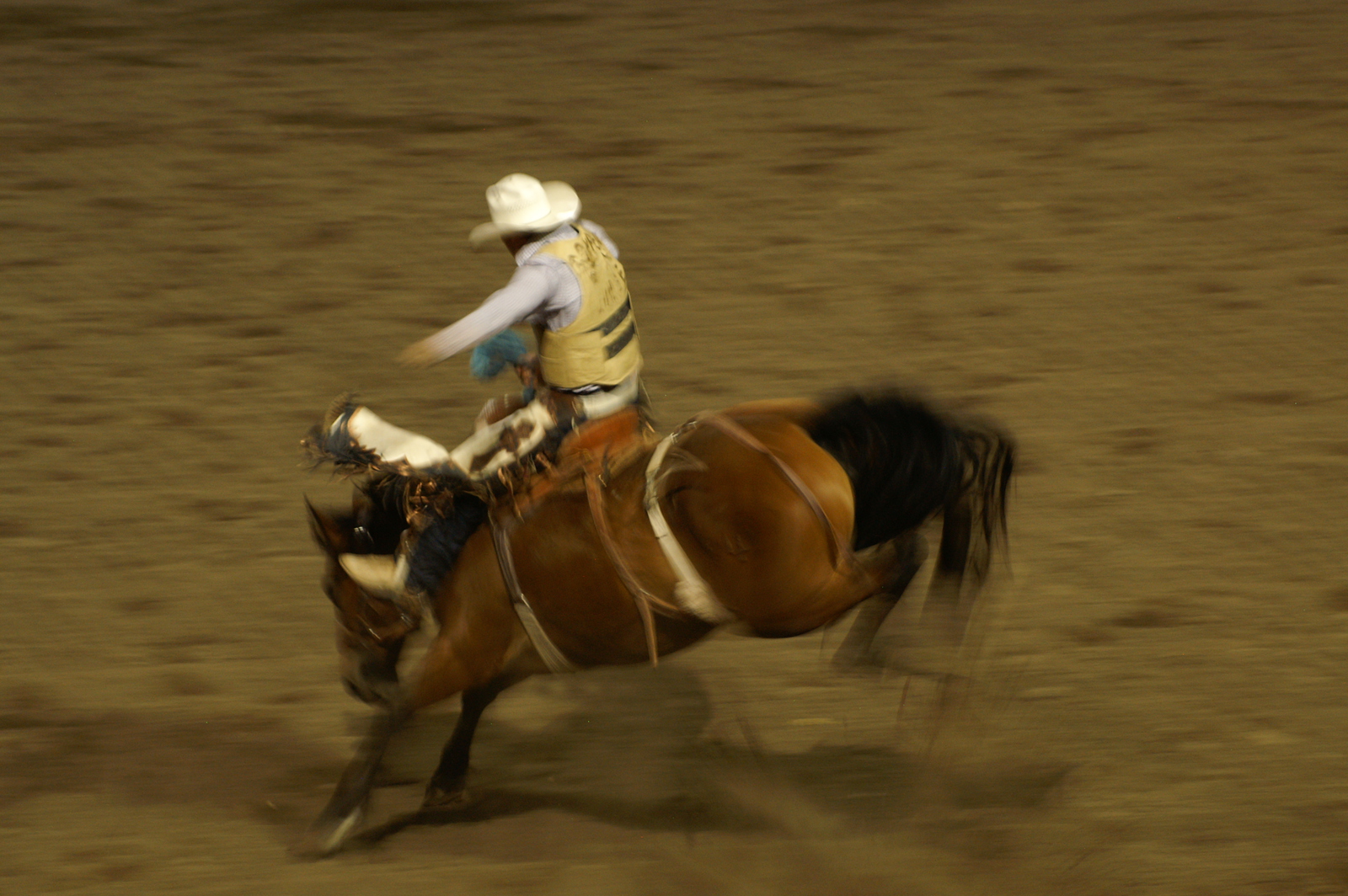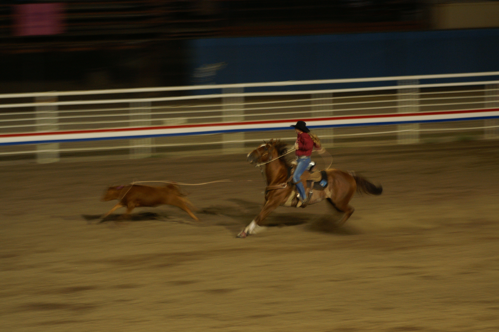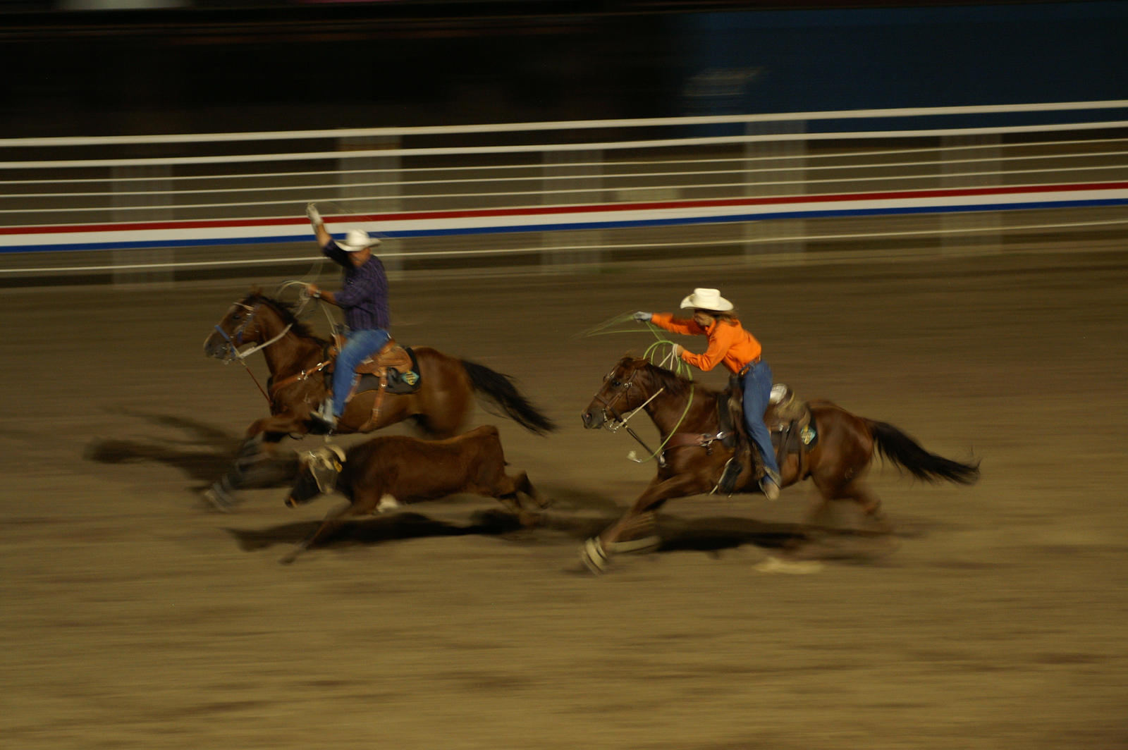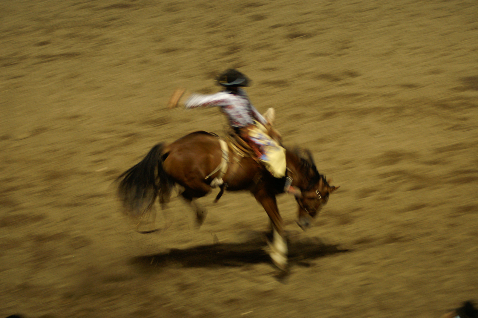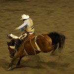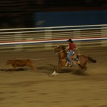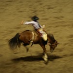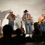 La soirée fut quant à elle consacrée à l’esprit cow-boy, à commencer par une diner-concert au Cody Cattle des Triple C Cowboys. Le trio a interprété des morceaux originaux et des reprises de country plus ou moins connus avec beaucoup d’entrain, et en ce qui concerne le plus jeune membre du groupe, avec une grande virtuosité. Les festivités ont ensuite continué au Stampede Park de Cody qui accueille toutes les nuits d’été un spectacle de rodéo typiquement américain. Après la diffusion de l’hymne national, la main sur le cœur, et une prière à genoux sur le sable de l’arène, les compétiteurs sont entrés en piste. Les différentes disciplines, plus variées que l’on se l’imagine, s’enchainent au rythme des acclamations du public : rodéo « classique » à cheval et à dos de taureau, rattrapage au lasso de veaux en solo et en duo, courses contre la montre à cheval autour de barils, activités pour les enfants – le tout ponctué des blagounettes de l’animateur de la soirée.