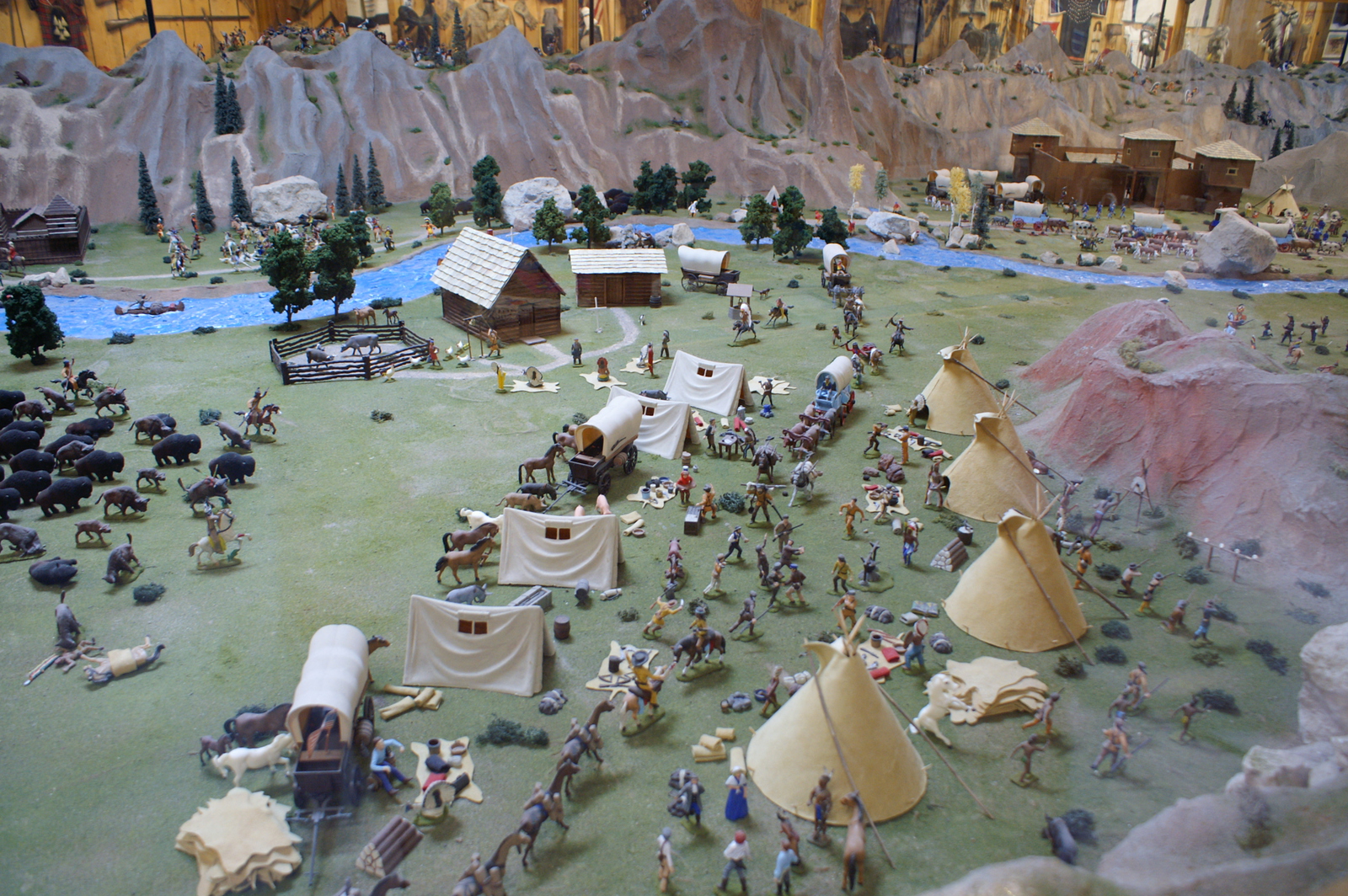 De l’autre côté de la rue, le Old West Miniature Village retrace au fil des années la cohabitation parfois houleuse entre les Native Americans (dits « indiens ») et les pionniers puis l’armée, sous forme d’une immense maquette commentée. Tout autour de cette exposition, de nombreuses vitrines présentent l’art particulièrement développé des tribus indiennes, dont des habits et ornements de très grande beauté. On y accède par le Tecumseh’s Trading Post où nous avons pu faire le plein de cadeaux souvenirs.
