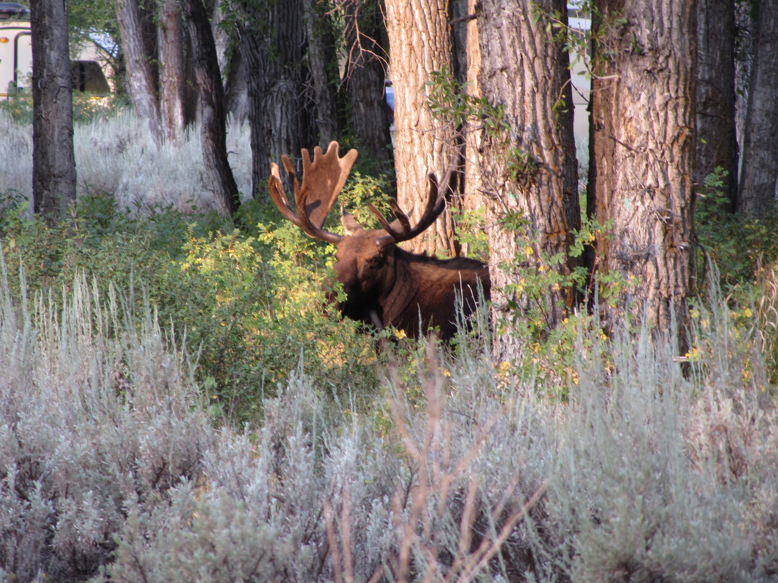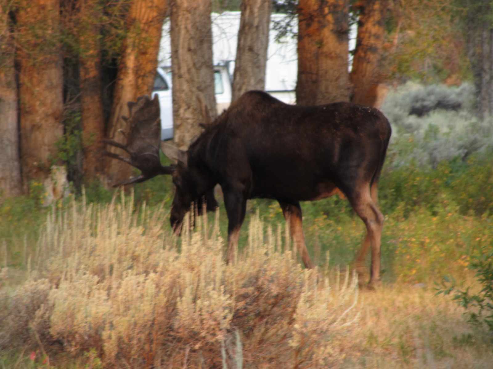• La rencontre inattendue à 7h30 du matin, un élan/moose (adulte et imposant) venant brouter au beau milieu du camp, indifférent aux touristes étonnés… mais prudents. Il est reparti tranquillement vers la forêt près d’une heure plus tard.