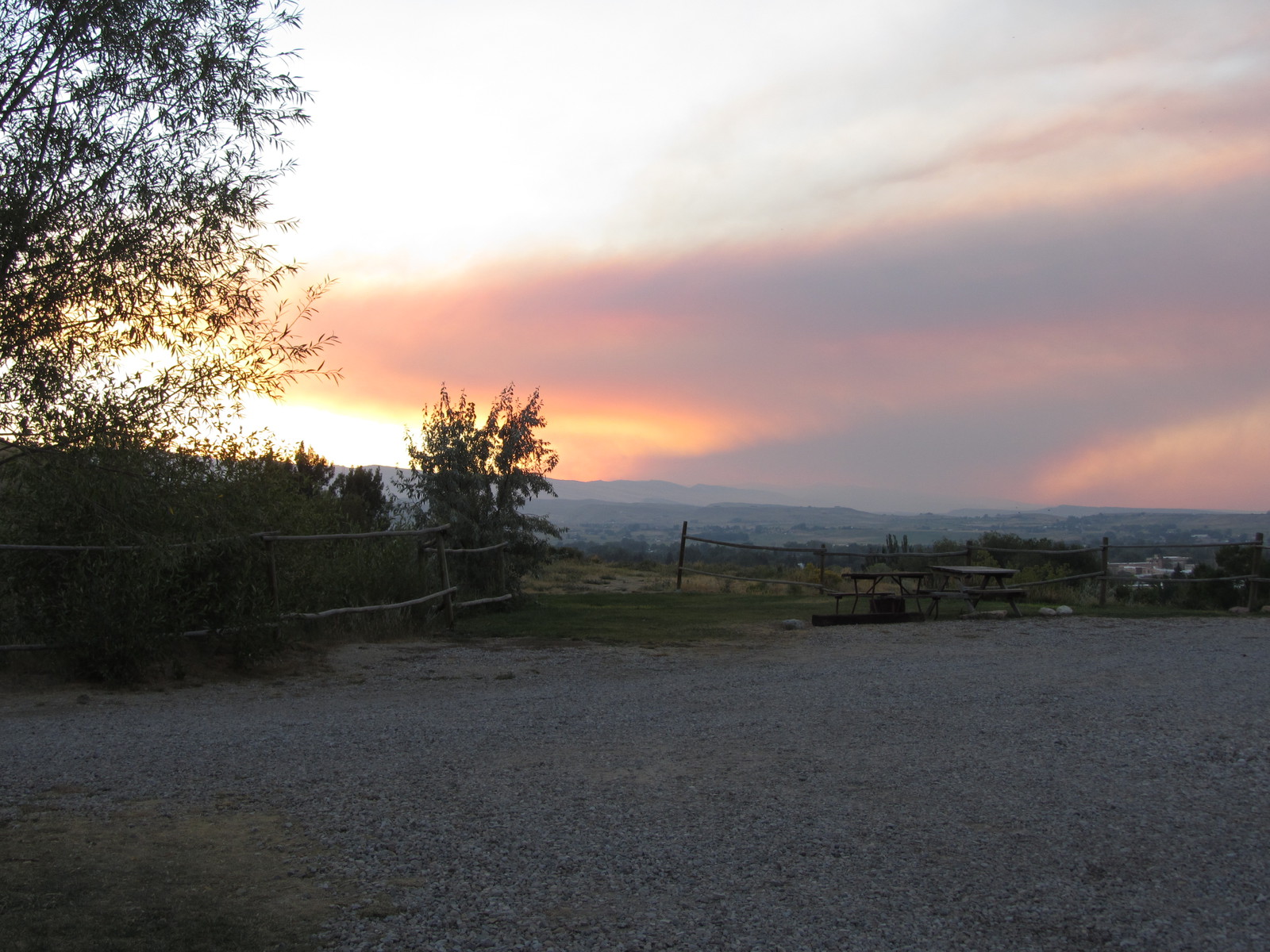 - Le campground domine la ville avec une belle vue en soirée.