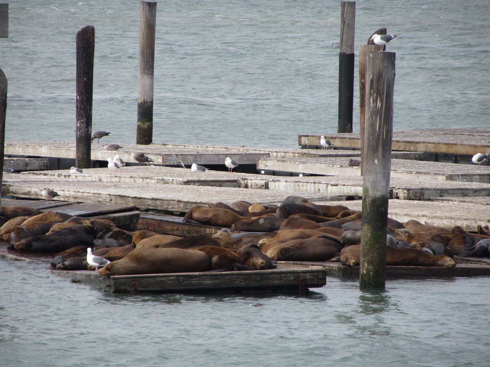 Après une longue attente, nous montons dans le tramway F, témoignage du passé qui nous ramène à Fisherman’s Wharf. Ses voitures presque toutes différentes proviennent des quatre coins du monde : Milan, Melbourne, Colombie, Moscou, et certaines villes américaines. En passant par le Pier 39, nous retrouvons les otaries et touristes euphoriques qui rendent ce quartier bien plus animé que la veille au soir.