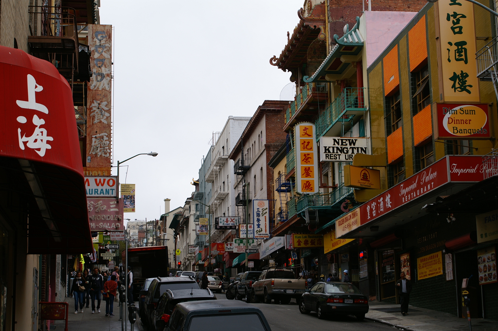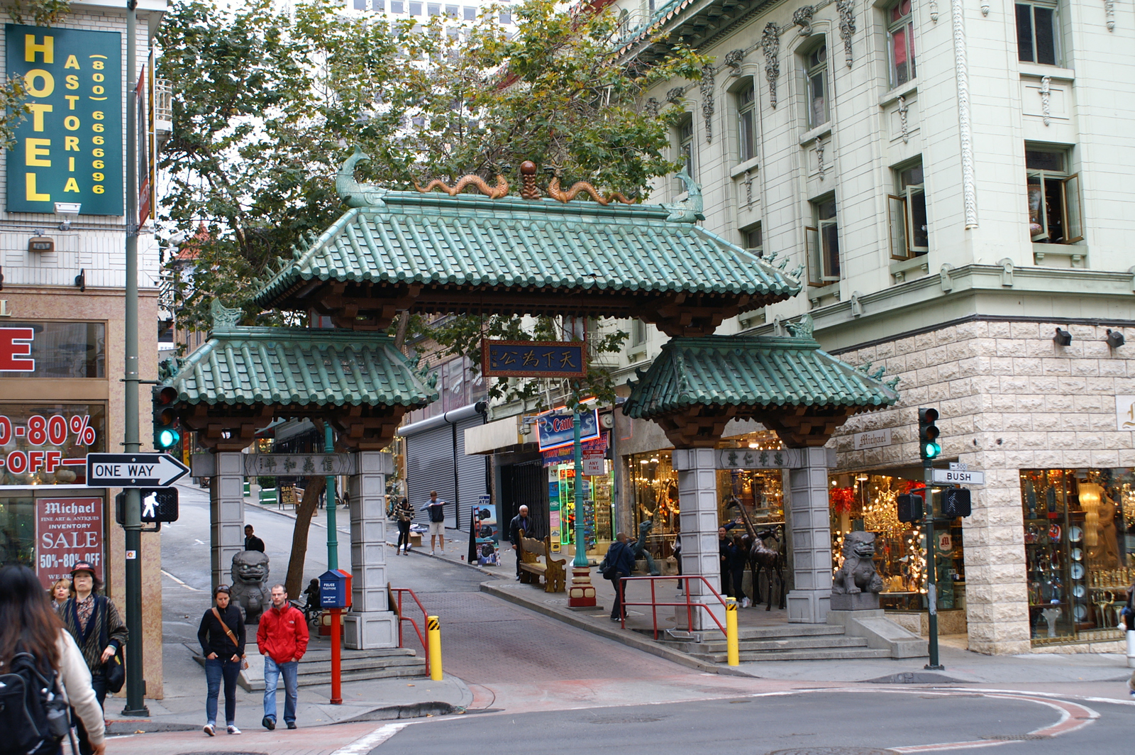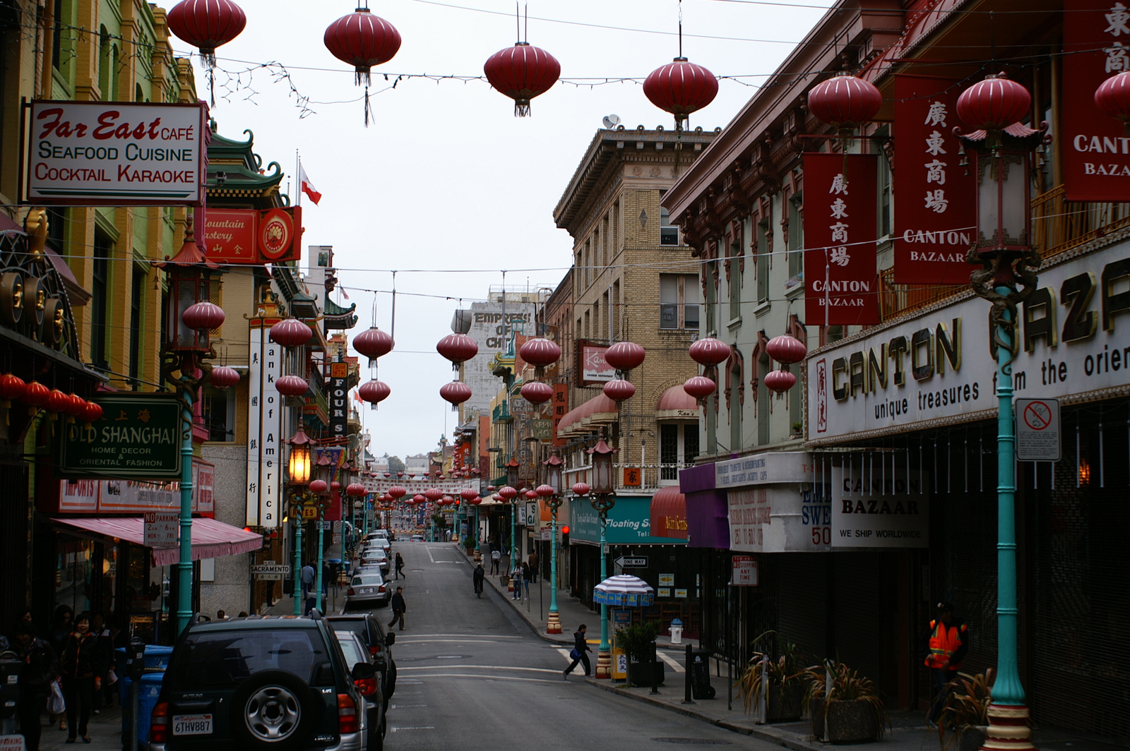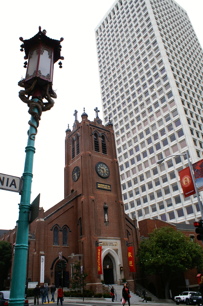 En franchissant la Chinatown Gate, nous entrons dans la plus grande communauté chinoise hors d’Asie (plus de 100 000 habitants), et la plus ancienne car fondée en 1848 (New York et Chicago disputent ce titre). Les rues restent très calmes avant 10h du matin, les commerces n’étant pas tous ouverts et les chinois pas tous réveillés, mais après les livraisons des fruits, légumes et autres denrées plus ou moins reconnaissables, le quartier s’agite. Nous le parcourons en tous sens, en particulier Portsmouth Square et ses joueurs de cartes, Wawerly et ses balcons peints, et Grant Avenue pour ses souvenirs made in China.