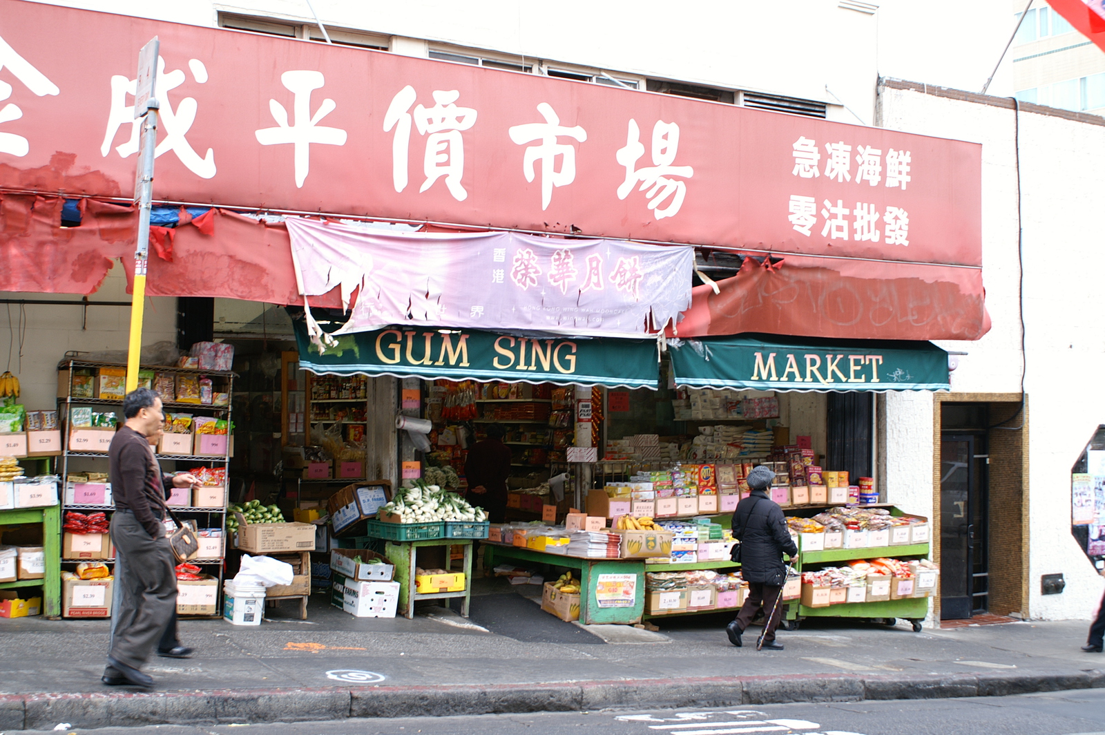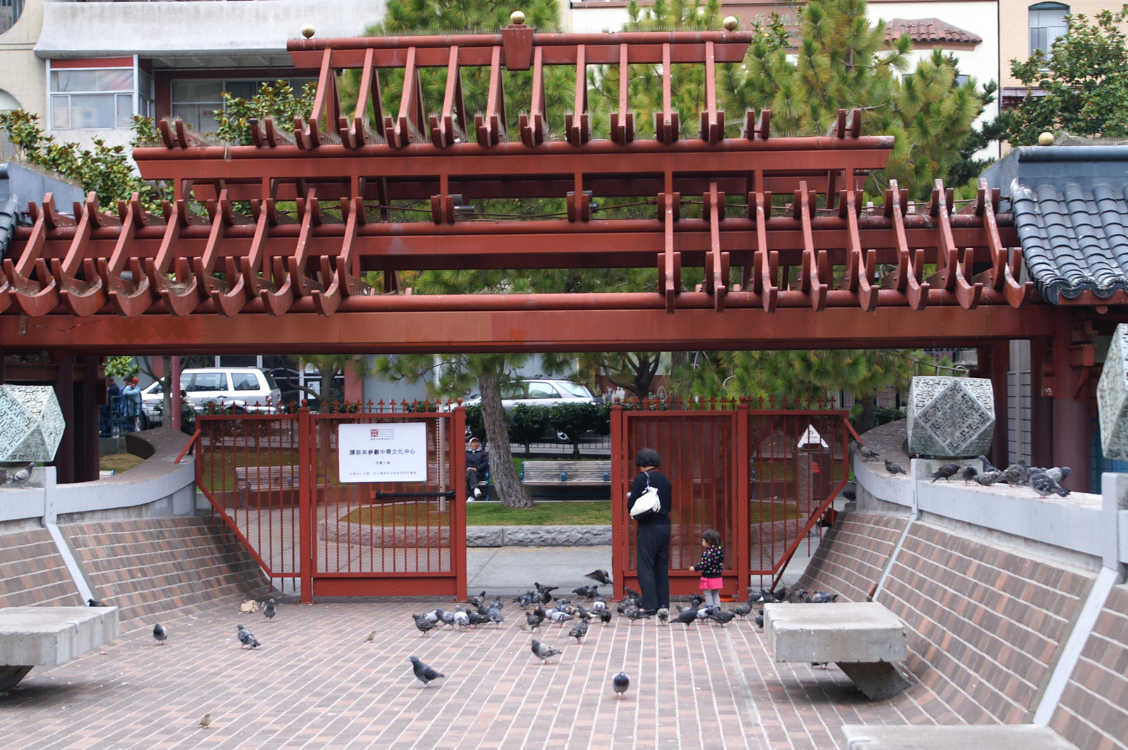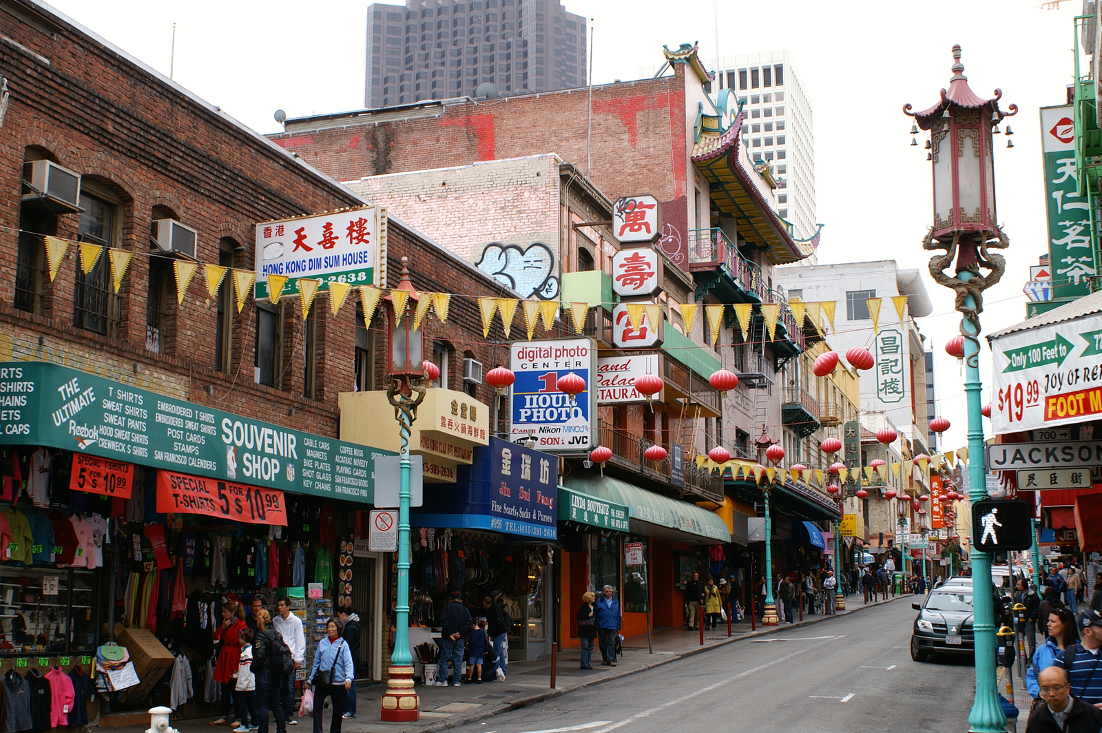 En franchissant la Chinatown Gate, nous entrons dans la plus grande communauté chinoise hors d’Asie (plus de 100 000 habitants), et la plus ancienne car fondée en 1848 (New York et Chicago disputent ce titre). Les rues restent très calmes avant 10h du matin, les commerces n’étant pas tous ouverts et les chinois pas tous réveillés, mais après les livraisons des fruits, légumes et autres denrées plus ou moins reconnaissables, le quartier s’agite. Nous le parcourons en tous sens, en particulier Portsmouth Square et ses joueurs de cartes, Wawerly et ses balcons peints, et Grant Avenue pour ses souvenirs made in China.