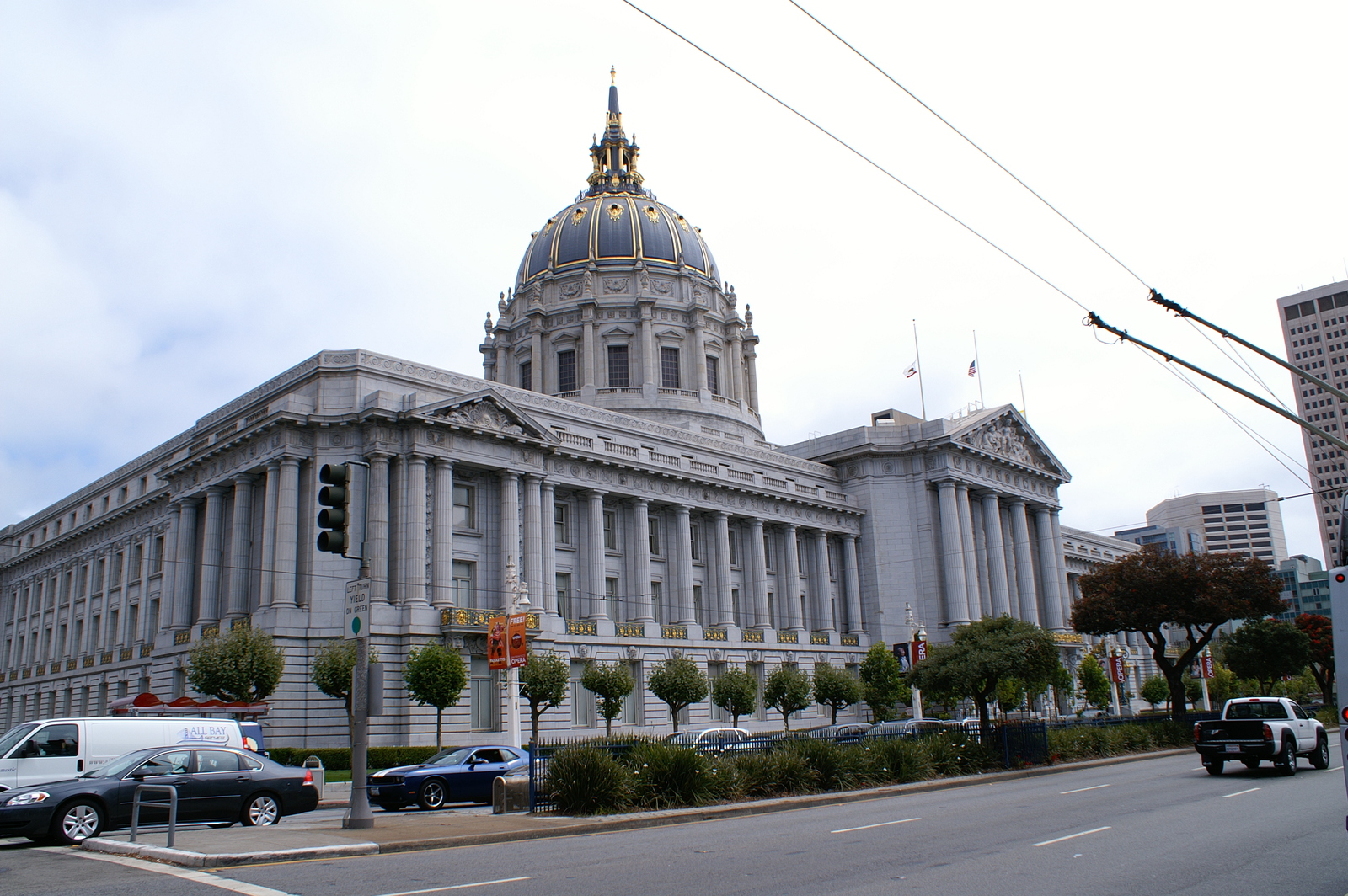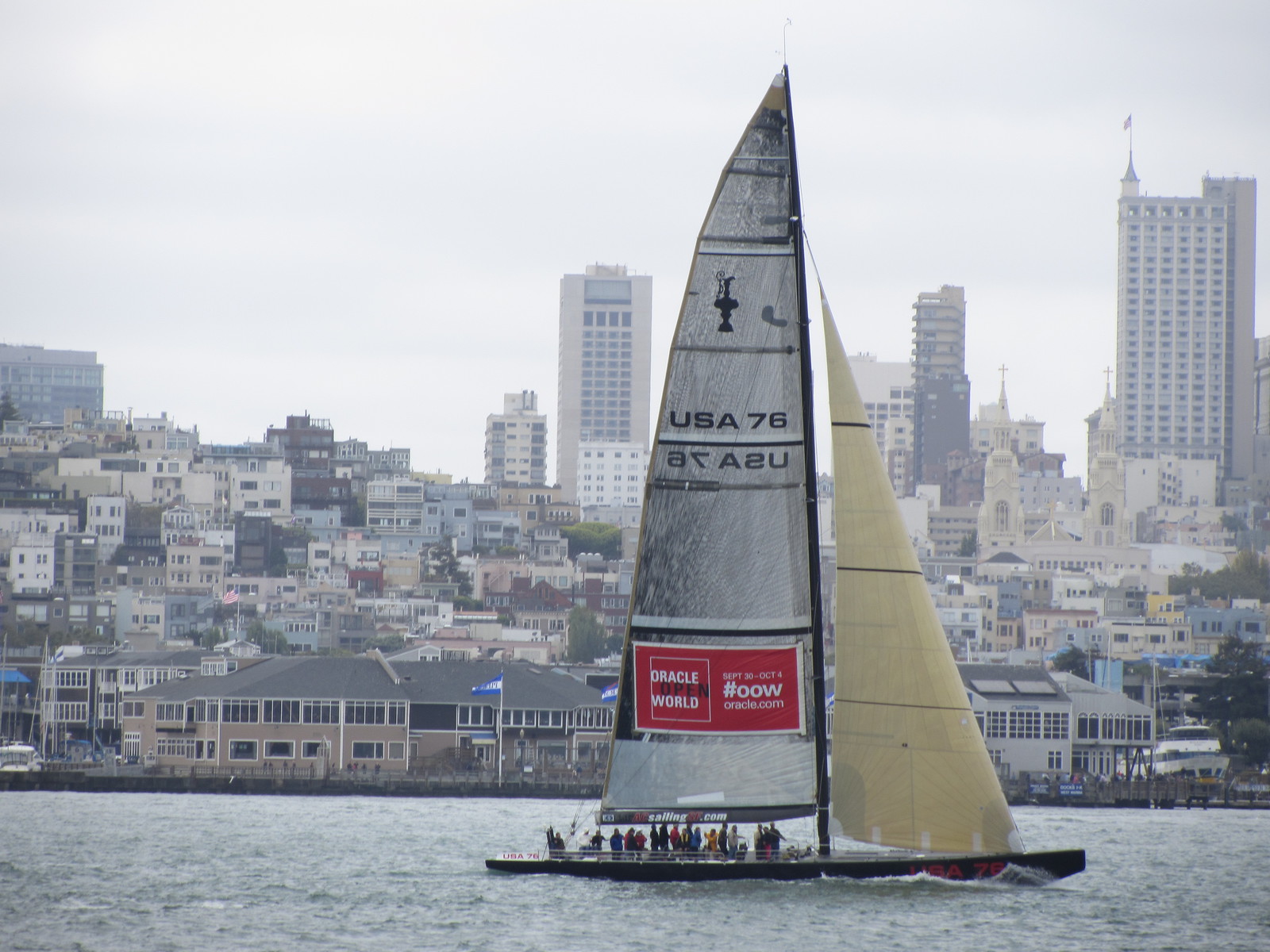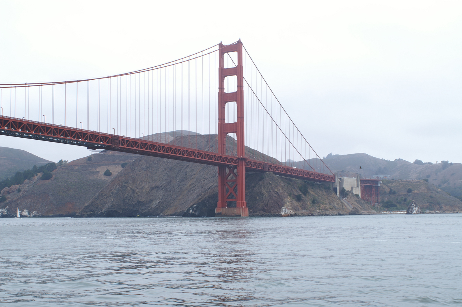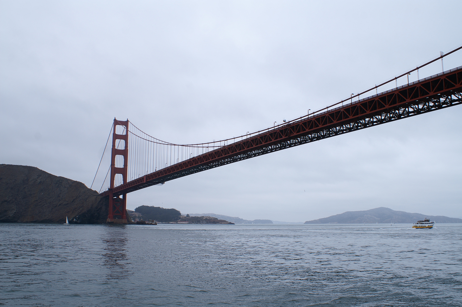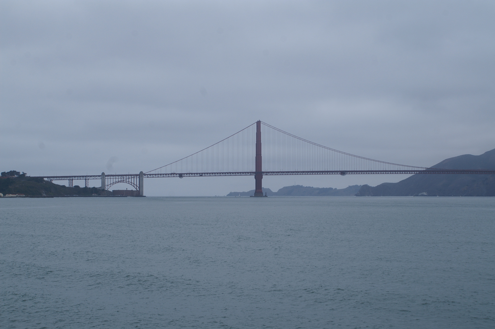 L’après-midi, la ligne California ouest de Cable Car et un premier bus nous déposent près du City Hall et du théâtre ; un second bus nous permet finalement d’atteindre Alamo Square et ses maisons victoriennes, dont la rangée des 7 « Painted Ladies » que tout photographe amateur passant par San Francisco veut immortaliser ! Dans ce quartier verdoyant perché sur une colline, nous retrouvons un peu de calme et de sérénité… Nous reprenons une dernière fois le bus pour Embarcadero, un quartier en bord de mer tout proche du Bay Bridge. Ce dernier comporte en réalité deux ponts reliés à une île centrale (Yerba Buena), dont la partie côté San Francisco supporte 2 voies de circulation superposées ; l’ensemble mesure plus de 7 km.