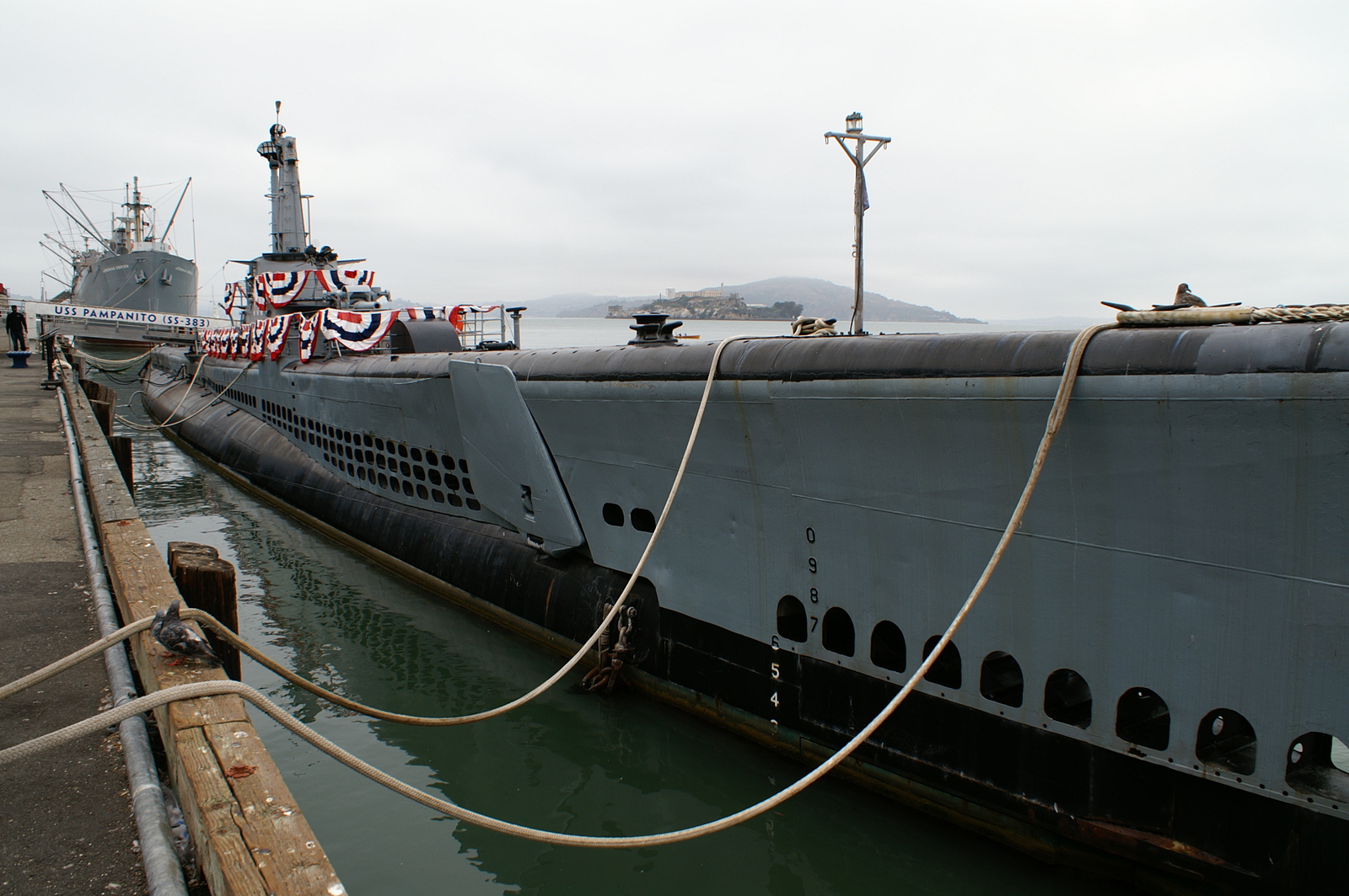 Nous filons ensuite deux rues plus à l’ouest vers le Cable Car Museum, qui retrace l’histoire de cette invention astucieuse d’un Londonien (Andrew Smith Hallidie) en 1873. Toute la machinerie, les roues et mécanismes sont sous nos yeux et les câbles partent courir en boucle sous les rues, pour entraîner les voitures des 3 lignes à 15 km/h environ. Nous retraversons Chinatown pour atteindre le quartier italien (ou ce qu’il en reste…) où un sympathique natif de la botte nous invitera à prendre table au Mona Lisa Ristorante.