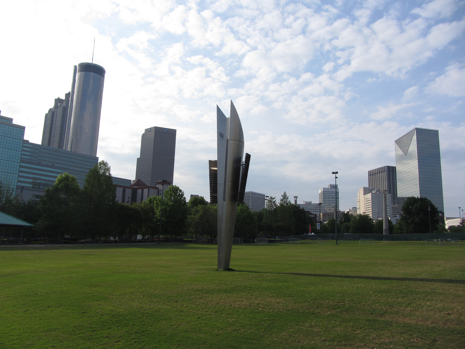 A la sortie, nous retraversons le Centennial Olympic Park qui célèbre les jeux olympiques de 1996 ; on y croisera une statue de Pierre de Coubertin et un étrange éventail de bronze en hommage aux origines grecques antiques de l’événement.