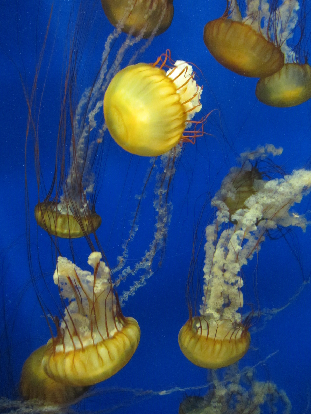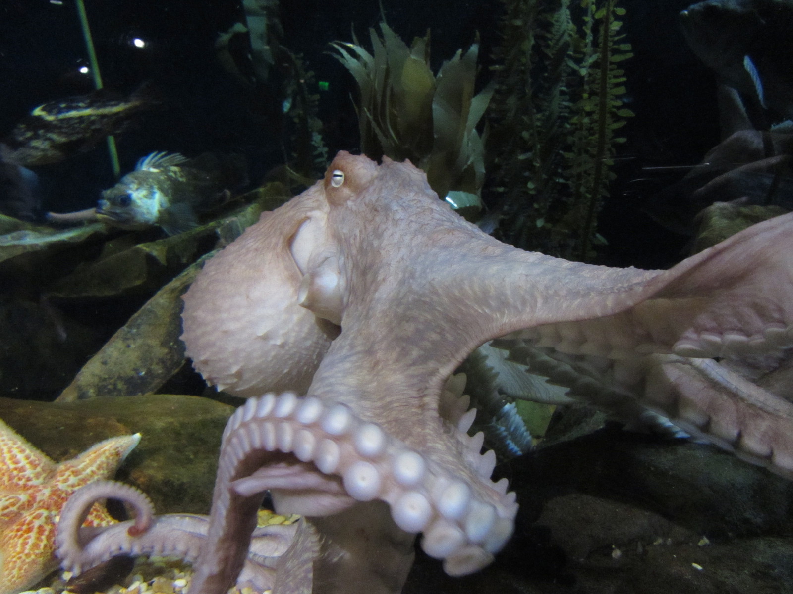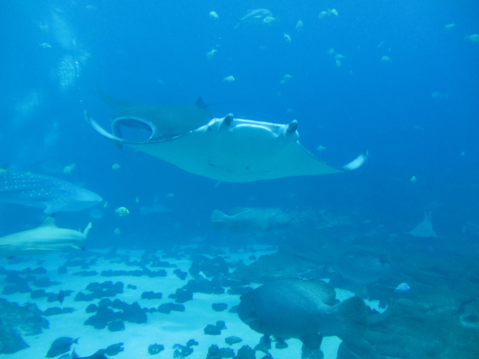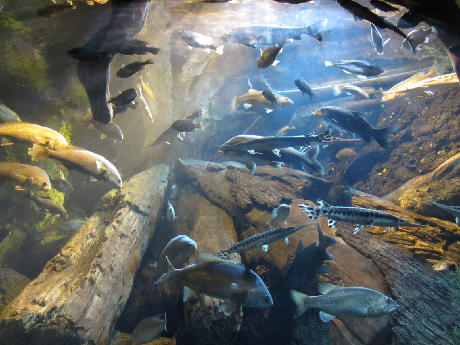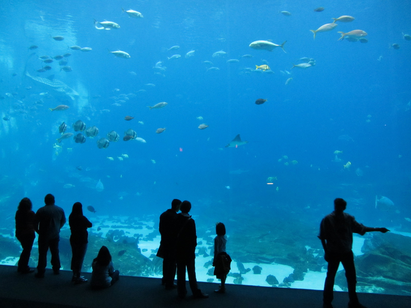 Pour cette demi-journée à Atlanta, nous visitons le Georgia Aquarium, réputé pour être le plus grand au monde. Il comporte 5 sections dont l’Ocean Voyager, un immense bassin accueillant 4 requins baleines, des raies manta et – semble-t-il – une infinité d’autres espèces aquatiques. On en traverse une bonne partie par un tunnel vitré qui permet de s’immerger dans cet univers sans pour autant se mouiller. Les autres sections permettent de découvrir l’étendue et la diversité des fonds marins : méduses, hippocampes, poulpes, dragons, coraux, bélugas, loutres, piranhas… de quoi remplir l’appareil photo de pas moins de 147 clichés. En revanche, les photos sont interdites lors du spectacle de dauphins, un vrai show à l’américaine avec animateur-chanteur, effets sonores et lumineux dans une salle pleine à craquer.