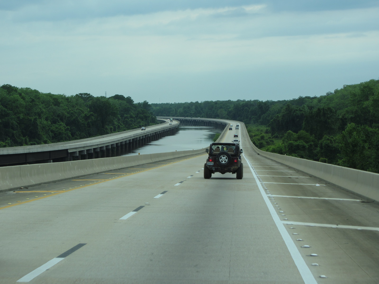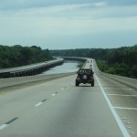 Cette première nuit en camping car nous a permis d’en tester l’étanchéité, après un orage corsé pendant la nuit… RAS, le camion ne prend pas l’eau et le soleil est revenu. L’une des plus longues journées de route de ce voyage nous attend : près de 300 miles sont au programme, direction le golfe du Mexique au sud de l’Alabama. Lors du passage de la frontière, nous gagnerons une heure grâce au changement de fuseau horaire.