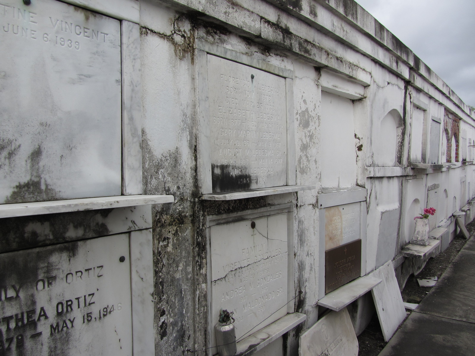 Pour faire suite aux visites des plantations de la veille, et en particulier de Laura Plantation, nous avons prévu ce matin une visite guidée de la Nouvelle Orléans organisée par « Le Monde Créole » (créé par un français, qui a aussi racheté la plantation susnommée). Nous retrouvons donc notre guide du jour, Michèle, devant une boutique d’antiquités de Royal Street. S’en suit alors un périple de plus de 2h30 à travers des endroits insolites de la ville : pharmacie française, luxueux hôtel, petites cours de style espagnol et créole, pour finir par le cimetière St. Louis numéro 1 (sur 4). C’est d’ailleurs là qu’est enterré Raymond Locoul, le grand-père de la fameuse Laura, elle-même décédée en 1963 à l’âge de 102 ans. L’ensemble de la visite est ponctuée de nombreuses anecdotes et éléments d’histoire sur l’architecture, les histoires de famille, les successions de dominations française/espagnole/américaine, la cohabitation entre esclaves et hommes libres (de couleur ou non – une particularité chez les créoles) – le tout dans l’enthousiasme et le dynamisme de notre guide, qui contribue à rendre ces visites intéressantes et instructives.