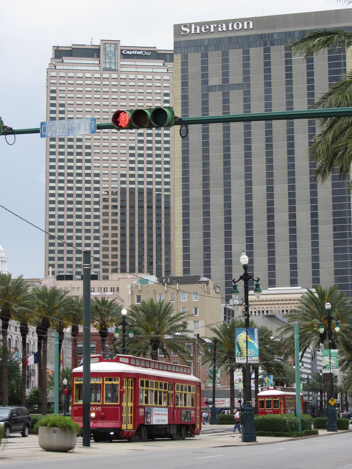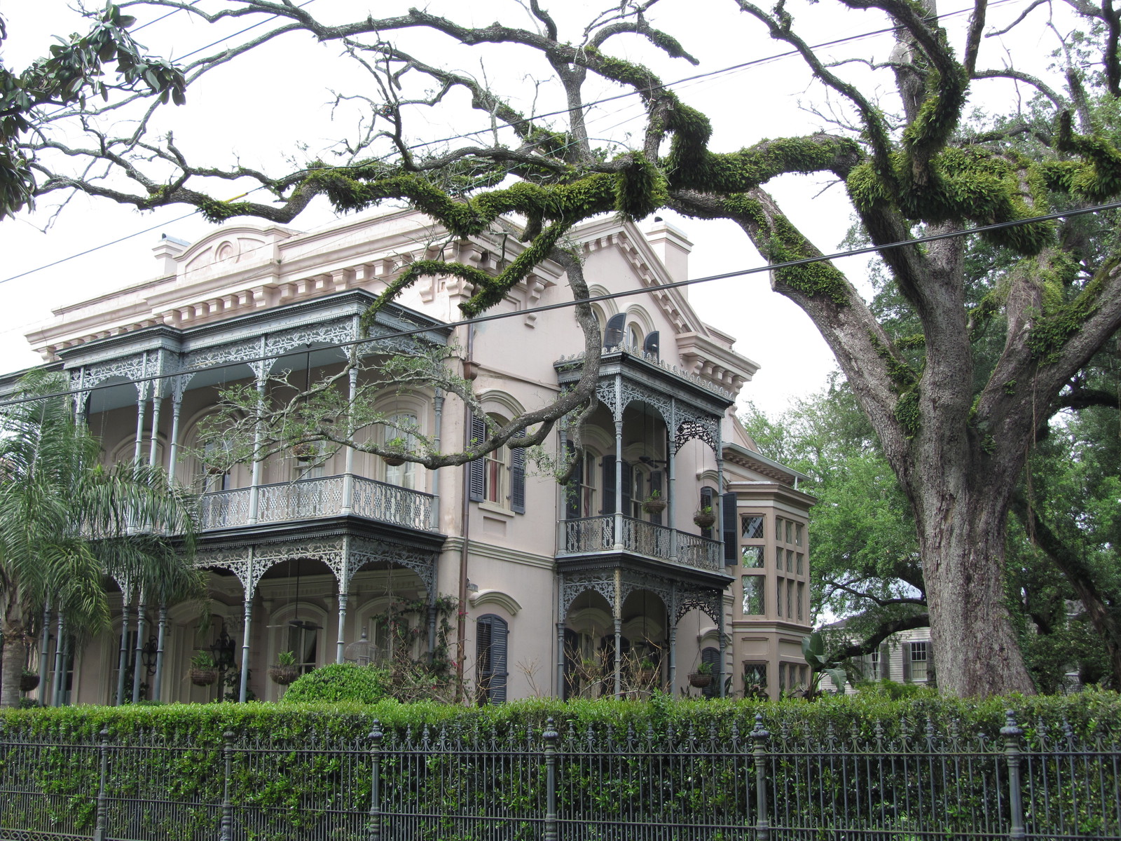 Après le repas, nous allons en répérage dans le quartier de Marigny, sur Frenchmen Street, pour réserver le repas-concert au Snug Harbor Jazz Bistro… malheureusement, nous sommes en pleine période de festivals et le concert de 3 pianistes de jazz est déjà complet depuis 2 semaines ! Nous repartons à l’opposé, vers le Garden District, en empruntant les bons vieux tramways toujours en activité – dont le St. Charles Streetcar, dit « un tramway nommé désir » (du film et livre bien connu de Tennessee Williams). Nous parcourons alors les rues de ce quartier cossu, dans l’ombre des chènes centenaires, à la recherche de demeures célèbres, imposantes ou originales. Leur style américain, luxueux et ostentatoire, tranche radicalement avec l’authenticité du « vieux carré » (le quartier français).