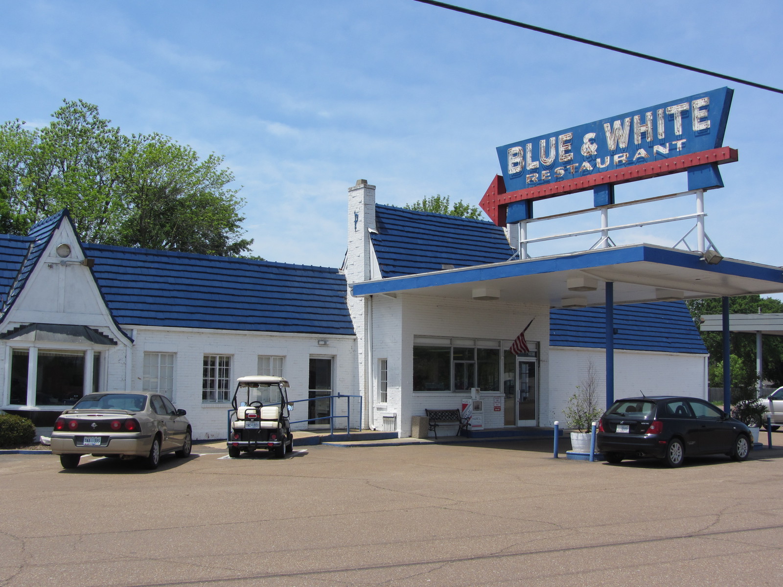 - Repas dans le camping car, sur le parking du Blue & White Restaurant.