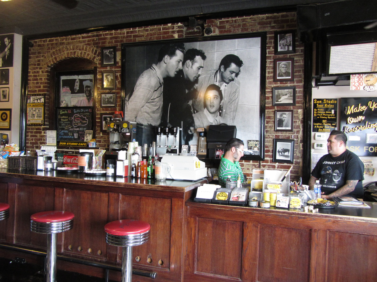 Nous enchainons avec la visite guidée du Sun Studio, là où Elvis Presley a enregistré son tout premier disque, My Happiness, en 1953. L’enthousiasme de notre guide nous replonge dans cette époque où le King n’était qu’un parfait inconnu qui venait presser un vinyle pour quelques dollars. La salle d’enregistrement où tout a commencé, avec ses parois acoustiques rudimentaires et son matériel d’un autre temps, fait de ce lieu une « terre sainte » authentique, restée dans son jus d’origine.