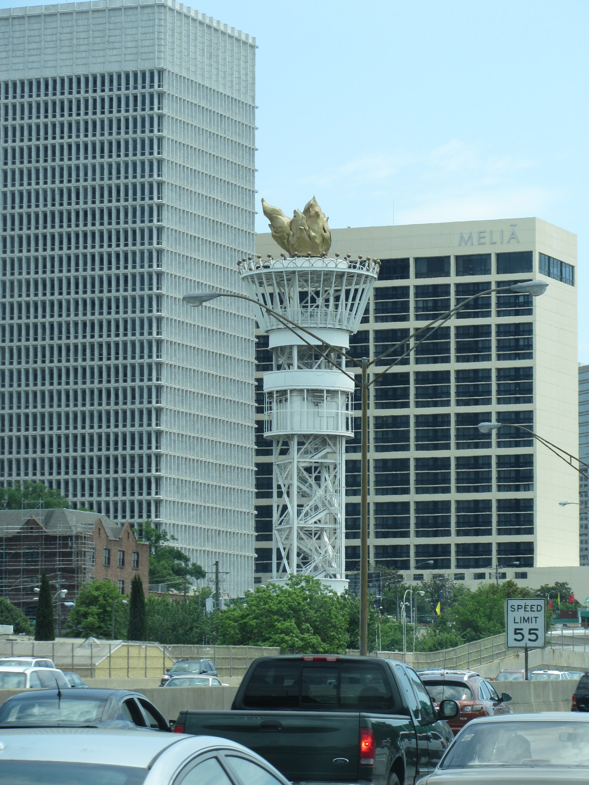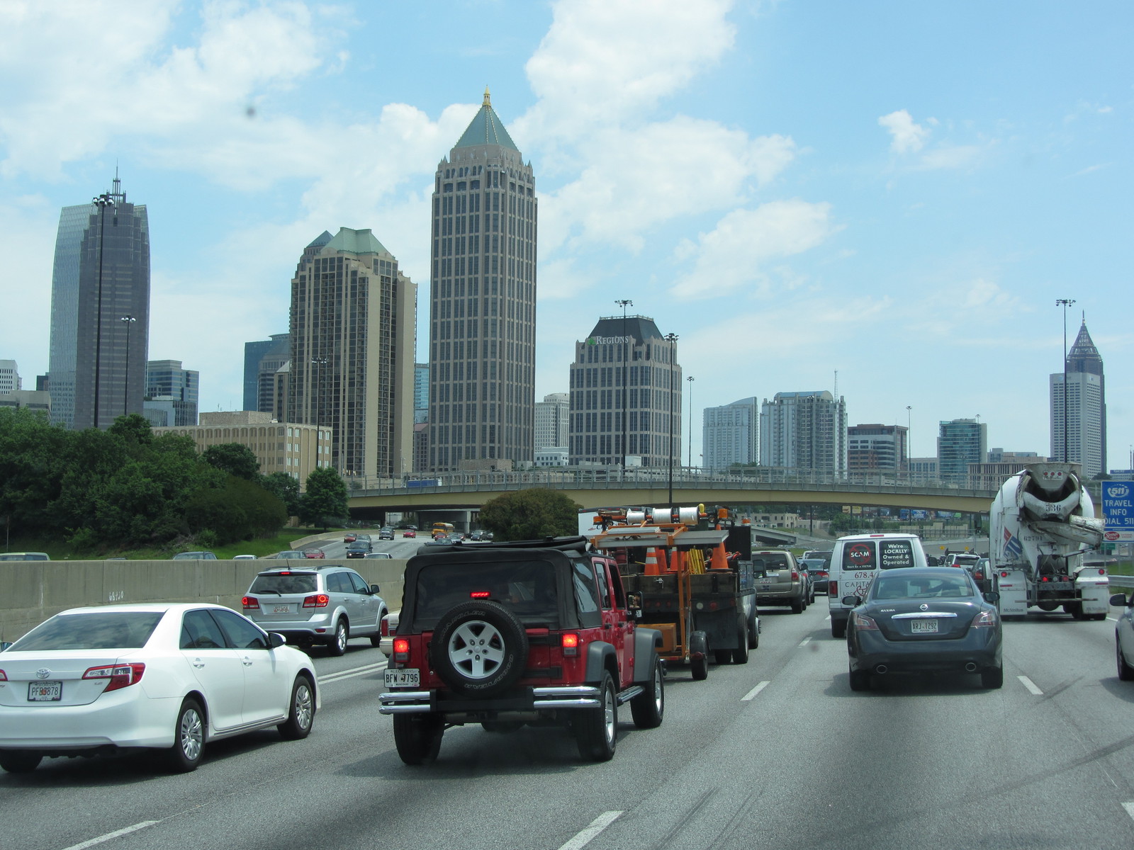 Nous repartons enfin pour la dernière ligne droite : l’arrivée à Atlanta un vendredi à 15h – une expérience unique sur des autoroutes à 8 voies où semi-remorques, camping car (nous !), pickups et voitures particulières déboulent en flot continu jusqu’à former un bel embouteillage. Heureusement, il est vite résorbé et nous pouvons rendre le camping car chez Cruise America à l’heure convenue. Nous quittons à regret notre beau camion pour retrouver le Quality Hotel de Downtown.